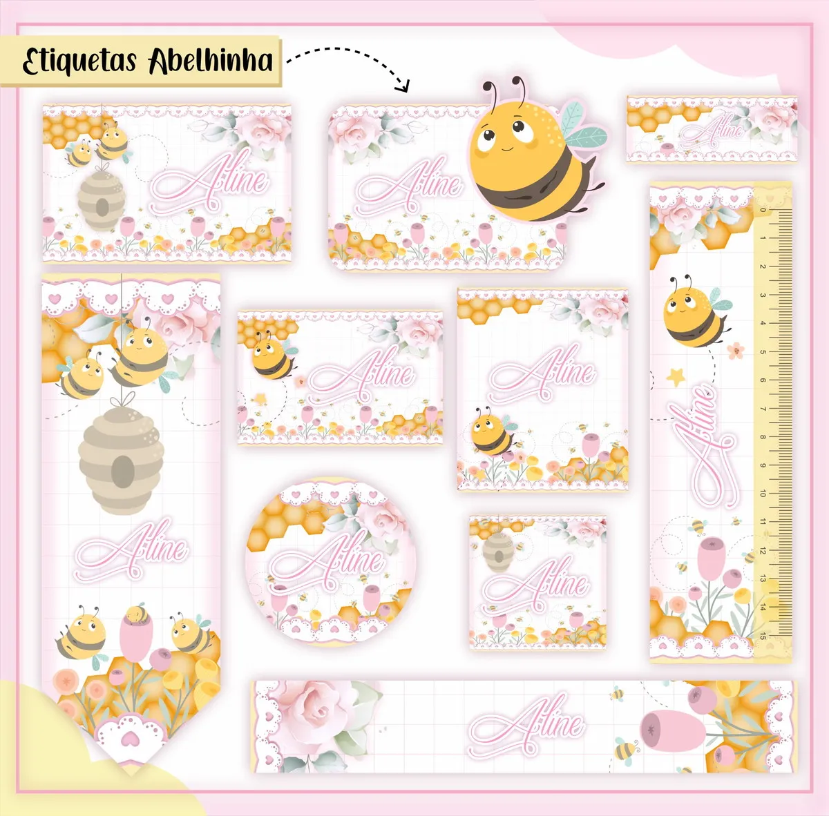 Transforme a organização escolar com nosso Arquivo Corte Etiqueta Escolar Abelhinha, desenvolvido especialmente para facilitar a personalização e impressão em casa! Ideal para pais, alunos e educadores, esse arquivo oferece praticidade e estilo na hora de identificar itens escolares, como mochilas, cadernos, lápis, e muito mais.