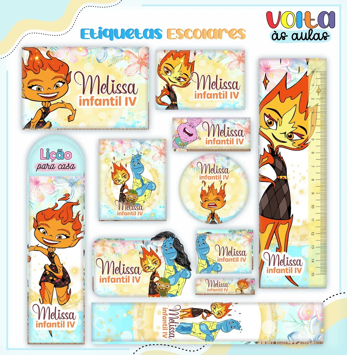 Arquivo Corte Etiqueta Escolar Elementos. Ideal para o início do ano letivo, aniversários, eventos escolares ou para facilitar a identificação de materiais de uso coletivo,