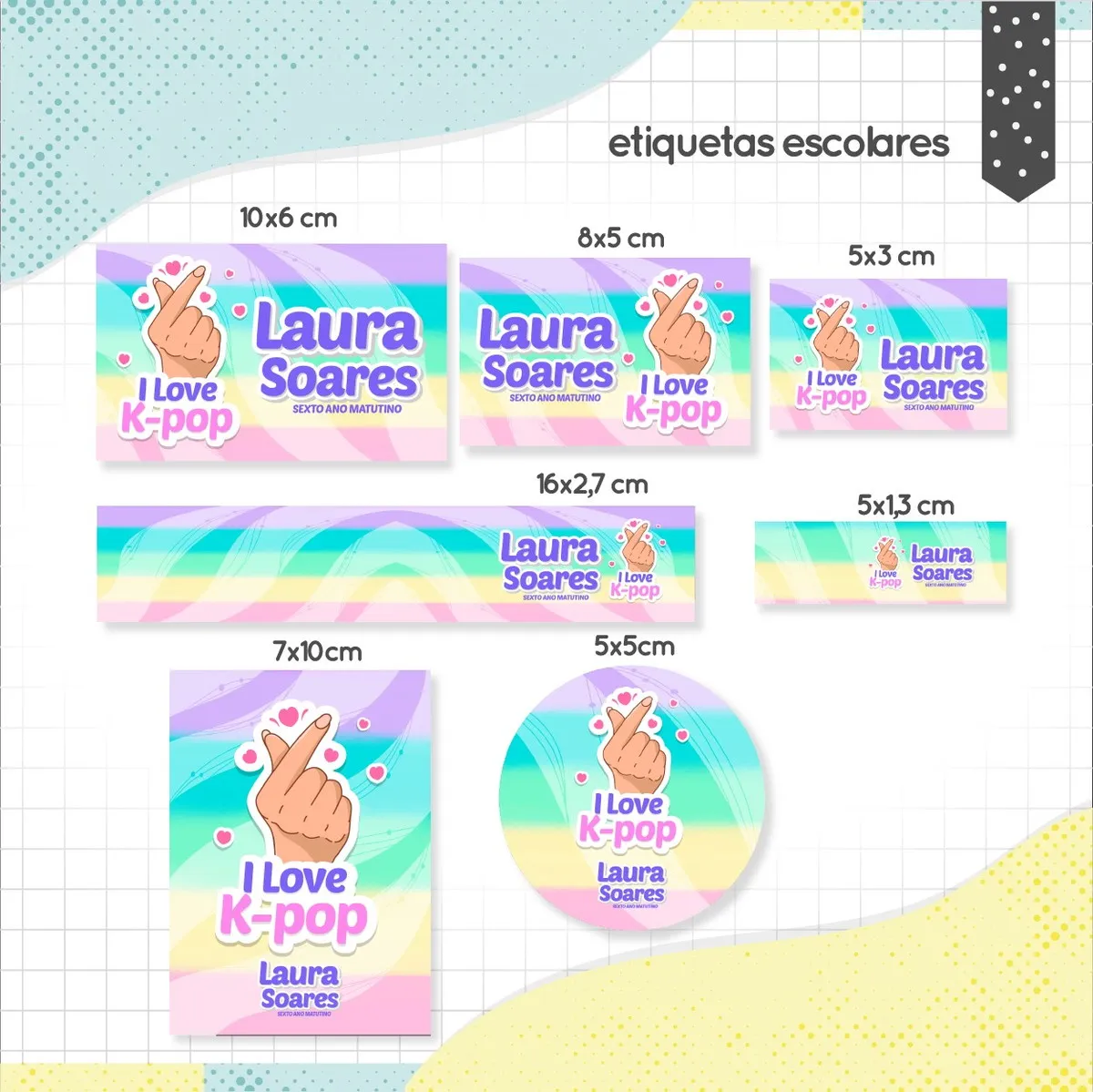 Transforme a organização escolar com nosso Arquivo Corte Etiqueta Escolar Kpop, desenvolvido especialmente para facilitar a personalização e impressão em casa! Ideal para pais, alunos e educadores, esse arquivo oferece praticidade e estilo na hora de identificar itens escolares, como mochilas, cadernos, lápis, e muito mais.