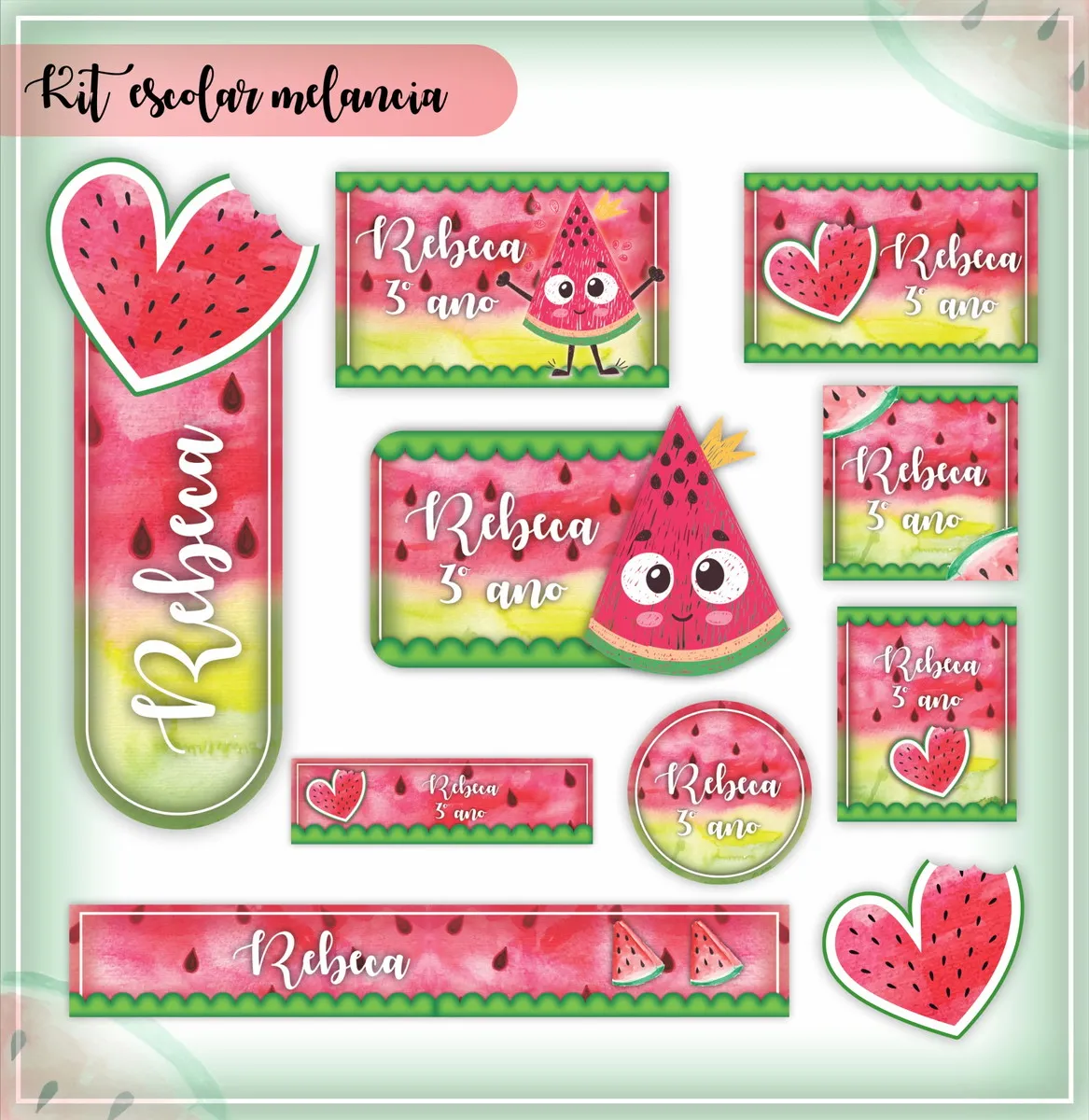Arquivo Corte Etiqueta Escolar Melancia. Ideal para o início do ano letivo, aniversários, eventos escolares ou para facilitar a identificação de materiais de uso coletivo,