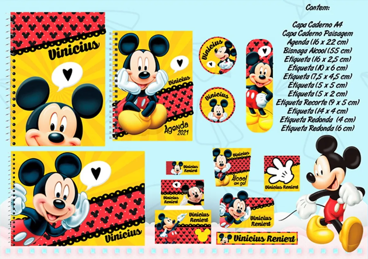 Arquivo Corte Etiqueta Escolar Mickey. Ideal para o início do ano letivo, aniversários, eventos escolares ou para facilitar a identificação de materiais de uso coletivo,