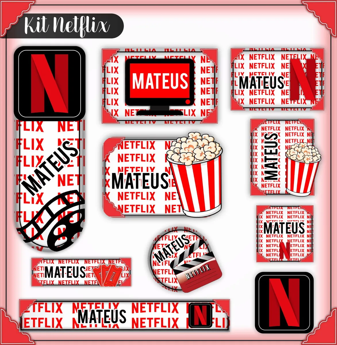 Arquivo Corte Etiqueta Escolar Netflix. Ideal para o início do ano letivo, aniversários, eventos escolares ou para facilitar a identificação de materiais de uso coletivo,
