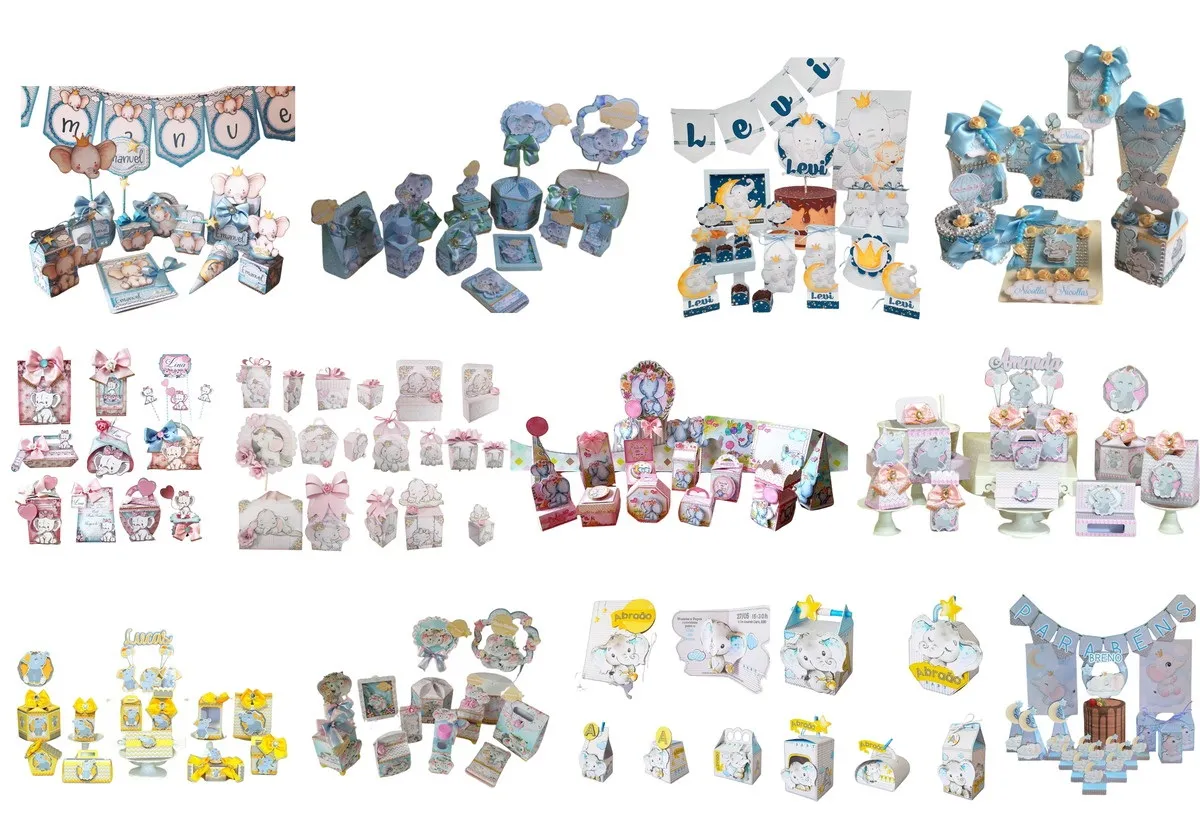 Dê asas à sua criatividade e divirta-se criando lindos projetos com esses Arquivo de Corte Combo Elefantinho, O nosso arquivo contém uma variedade de modelos de corte, incluindo elementos populares, Com esses elementos, você poderá criar lindas novidades e decorações para enriquecer o visual das suas festas e torná-los ainda mais interessantes e envolventes.