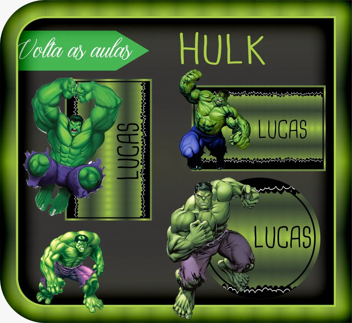 Arquivo de Corte Etiqueta Escolar Hulk. Ideal para o início do ano letivo, aniversários, eventos escolares ou para facilitar a identificação de materiais de uso coletivo,