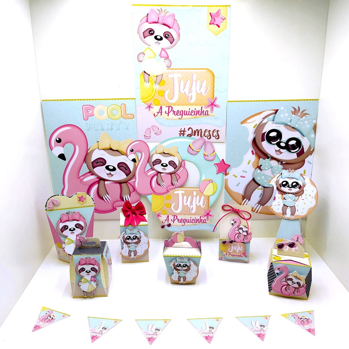 Cada peça presente no arquivo foi planejada para garantir que a montagem seja leve, harmônica e visualmente marcante. Dessa forma, o topo valoriza o bolo e complementa perfeitamente o cenário da mesa decorada, deixando tudo mais fotogênico e memorável. Além disso, o tema preguiça combina com paletas suaves, tornando seu evento ainda mais aconchegante.