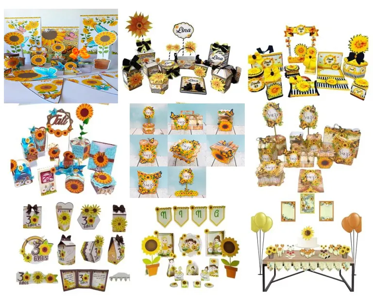 Dê asas à sua criatividade e divirta-se criando lindos projetos com esses Arquivo de Corte Super Combo Girassol, O nosso arquivo contém uma variedade de modelos de corte, incluindo elementos populares, Com esses elementos, você poderá criar lindas novidades e decorações para enriquecer o visual das suas festas e torná-los ainda mais interessantes e envolventes.