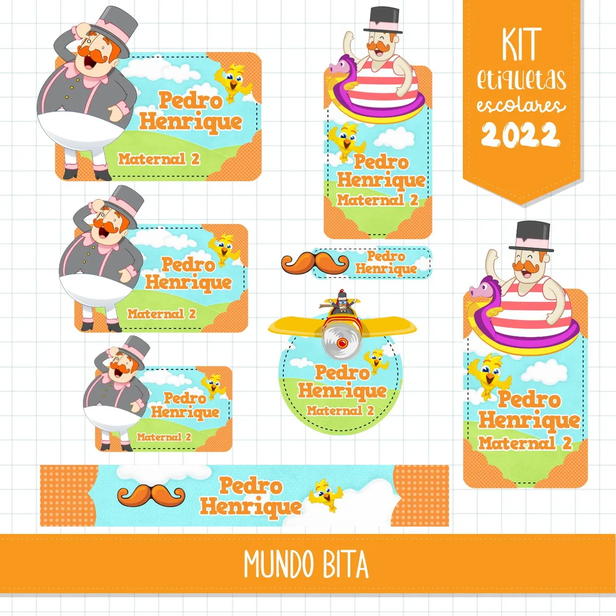Arquivo Digital Etiqueta Escolar Bita. Ideal para o início do ano letivo, aniversários, eventos escolares ou para facilitar a identificação de materiais de uso coletivo,