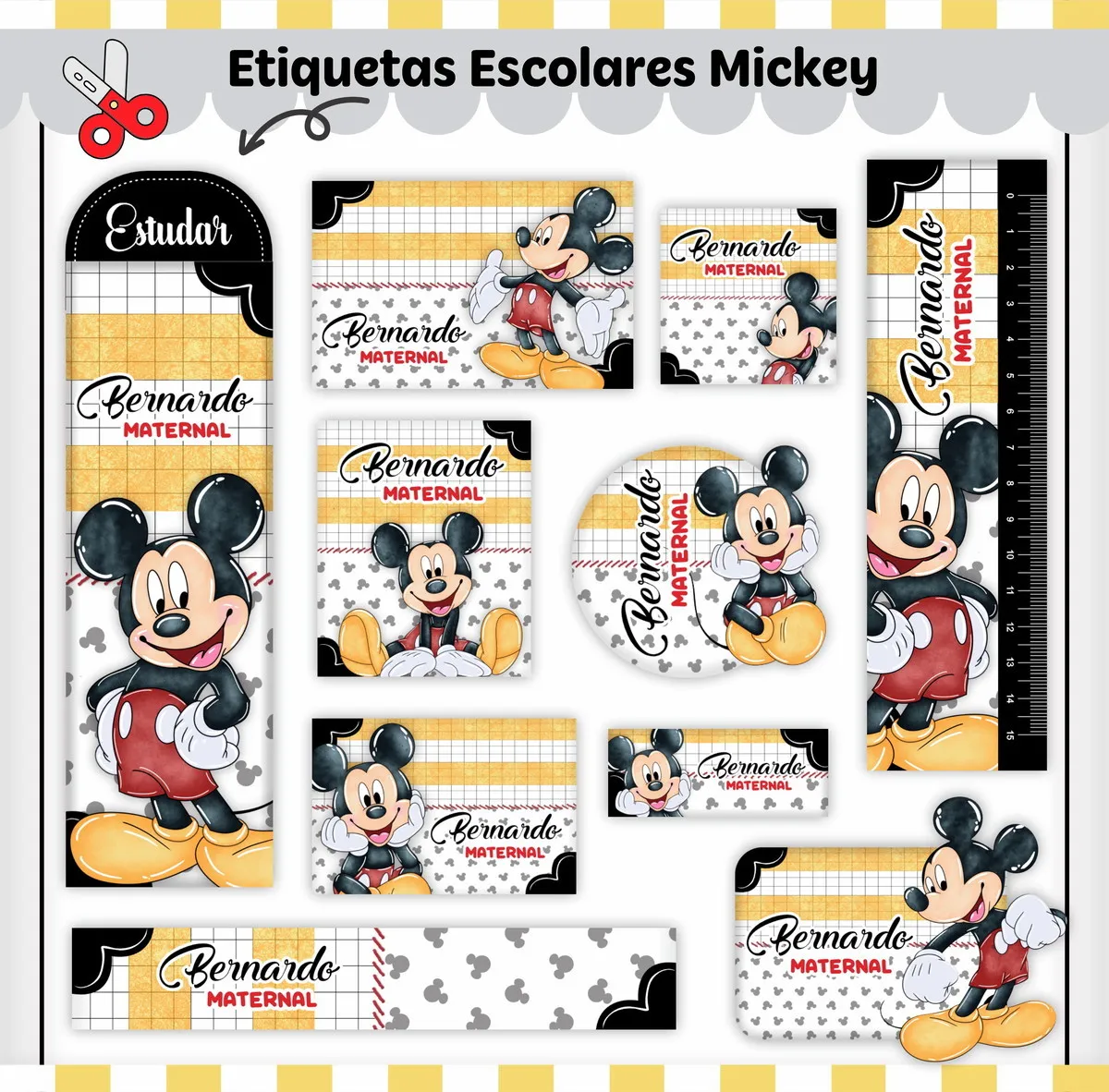 Transforme a organização escolar com nosso Arquivo Digital Etiqueta Escolar Mickey, desenvolvido especialmente para facilitar a personalização e impressão em casa! Ideal para pais, alunos e educadores, esse arquivo oferece praticidade e estilo na hora de identificar itens escolares, como mochilas, cadernos, lápis, e muito mais.