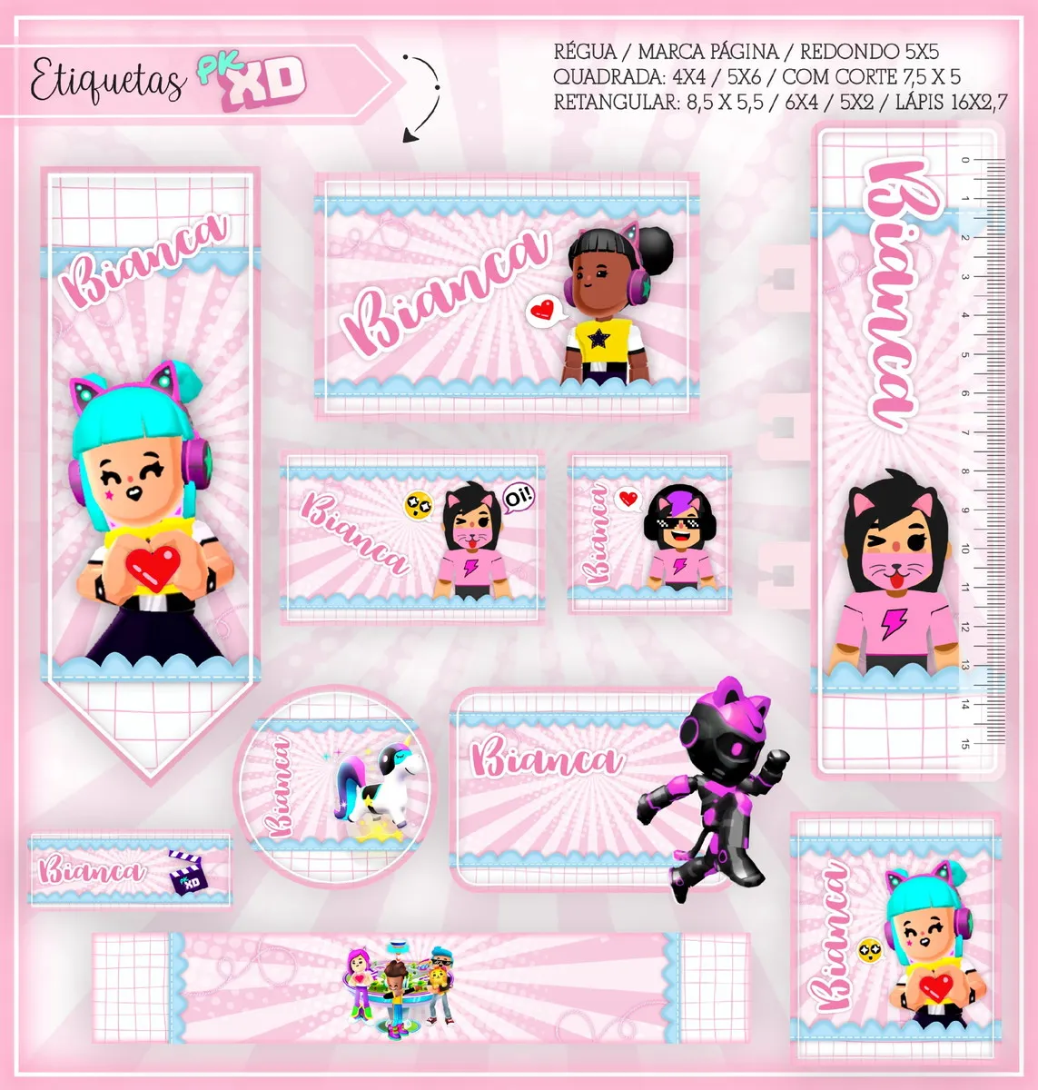 Arquivo Digital Etiqueta Escolar PK XD. Ideal para o início do ano letivo, aniversários, eventos escolares ou para facilitar a identificação de materiais de uso coletivo,