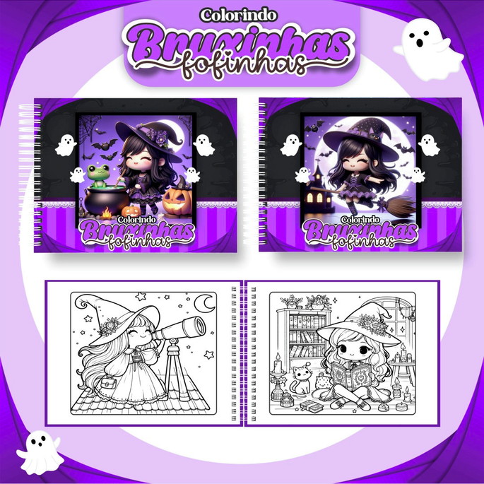 ✨ Garanta já o seu! Arquivo Digital Livro de Colorir Bruxinhas