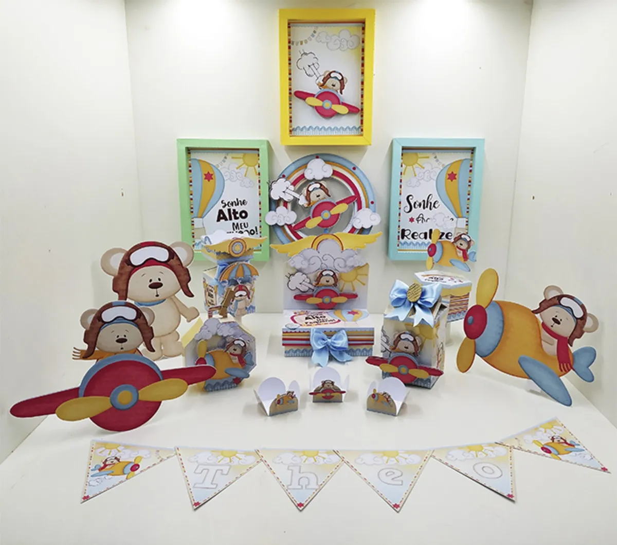 Dê asas à sua criatividade e divirta-se criando lindos projetos com esses Arquivo Digital Ursinho Aviador Studio e Pdf, O nosso arquivo contém uma variedade de modelos de corte, incluindo elementos populares, Com esses elementos, você poderá criar lindas novidades e decorações para enriquecer o visual das suas festas e torná-los ainda mais interessantes e envolventes.