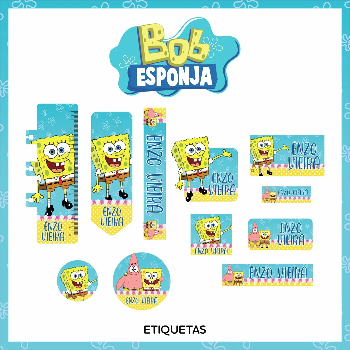 Arquivo Etiqueta Escolar Bob Esponja. Ideal para o início do ano letivo, aniversários, eventos escolares ou para facilitar a identificação de materiais de uso coletivo,