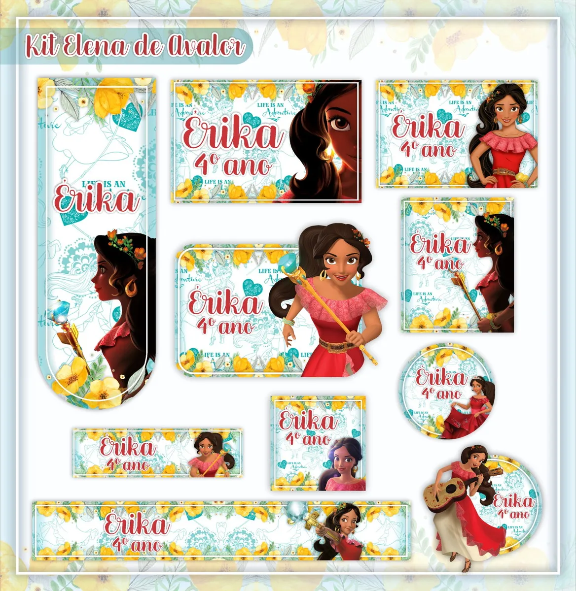 Arquivo Etiqueta Escolar Elena de Avalor. Ideal para o início do ano letivo, aniversários, eventos escolares ou para facilitar a identificação de materiais de uso coletivo,