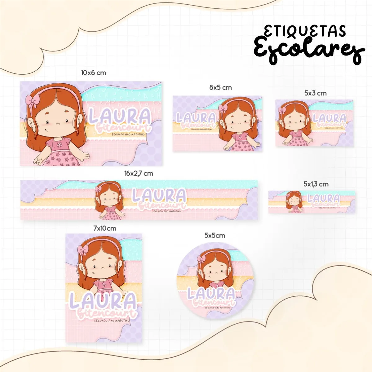 Transforme a organização escolar com nosso Arquivo Etiqueta Escolar Menina Ruiva, desenvolvido especialmente para facilitar a personalização e impressão em casa! Ideal para pais, alunos e educadores, esse arquivo oferece praticidade e estilo na hora de identificar itens escolares, como mochilas, cadernos, lápis, e muito mais.