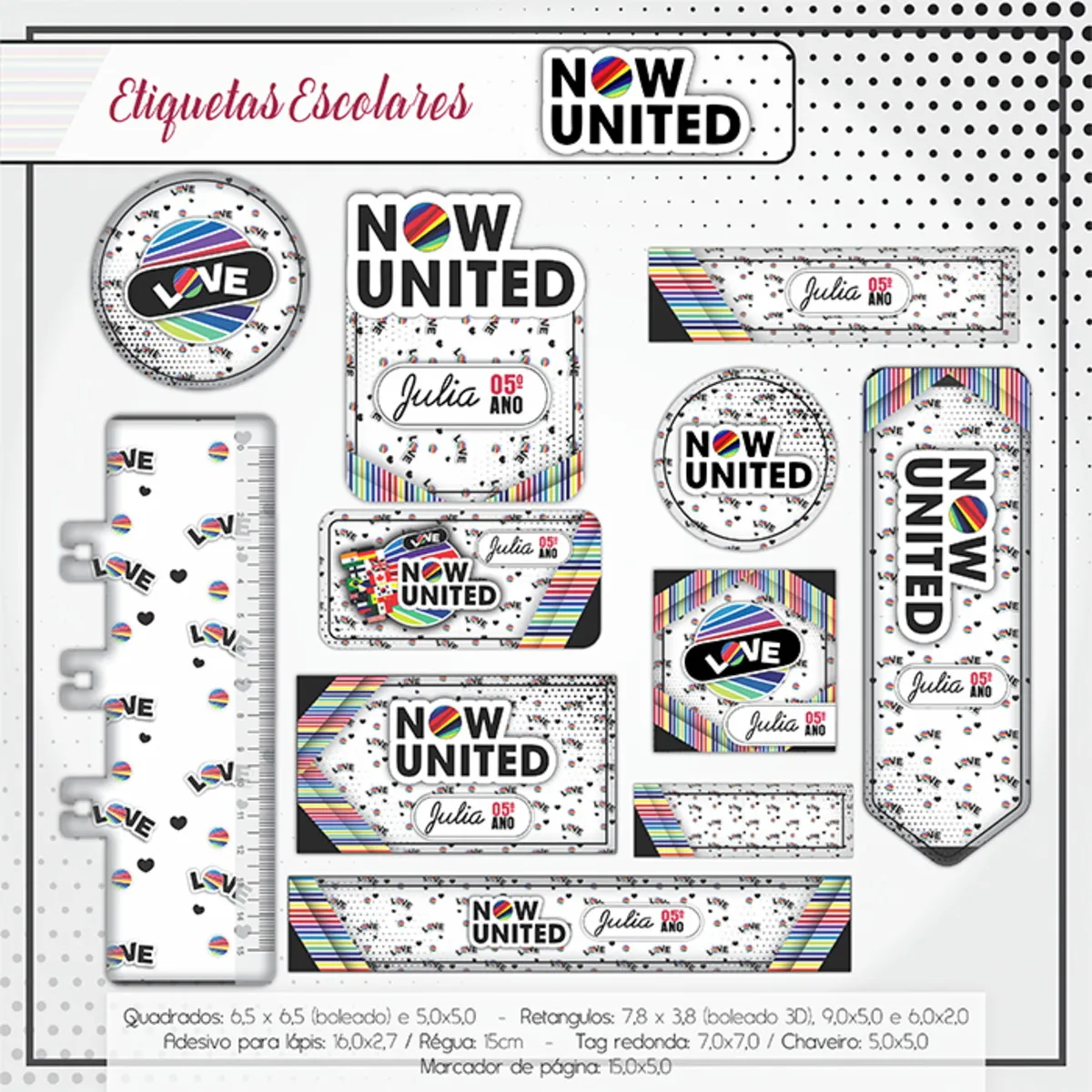 Arquivo Etiqueta Escolar Now United. Ideal para o início do ano letivo, aniversários, eventos escolares ou para facilitar a identificação de materiais de uso coletivo,