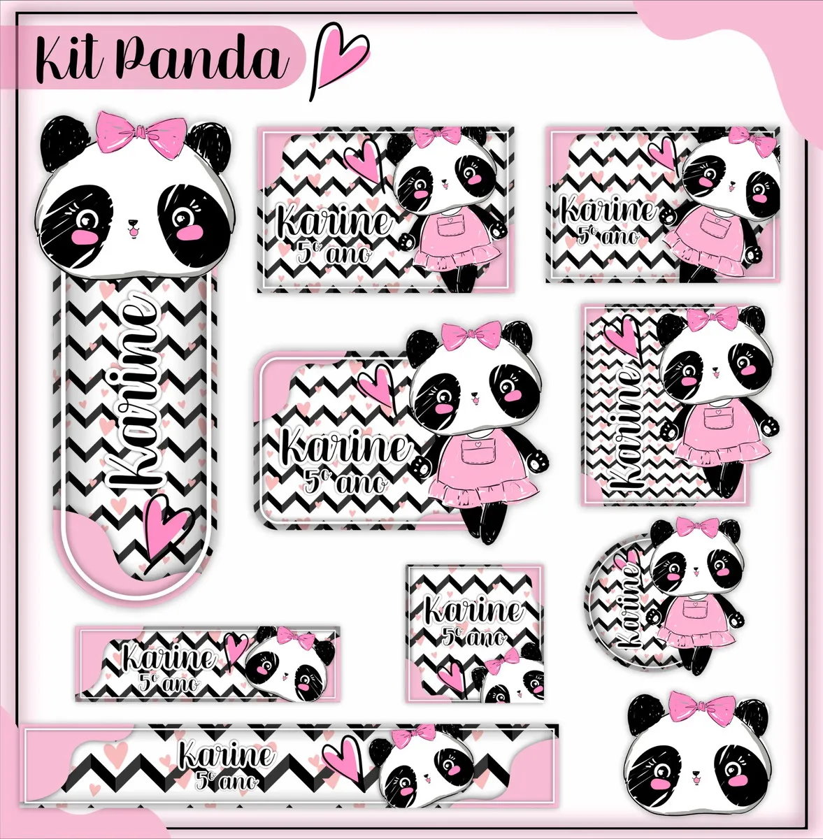 Arquivo Etiqueta Escolar Panda Rosa. Ideal para o início do ano letivo, aniversários, eventos escolares ou para facilitar a identificação de materiais de uso coletivo,