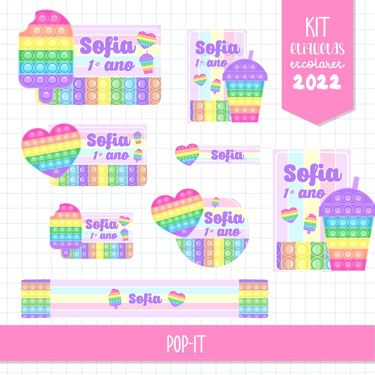 Arquivo Etiqueta Escolar Pop It Studio. Ideal para o início do ano letivo, aniversários, eventos escolares ou para facilitar a identificação de materiais de uso coletivo,