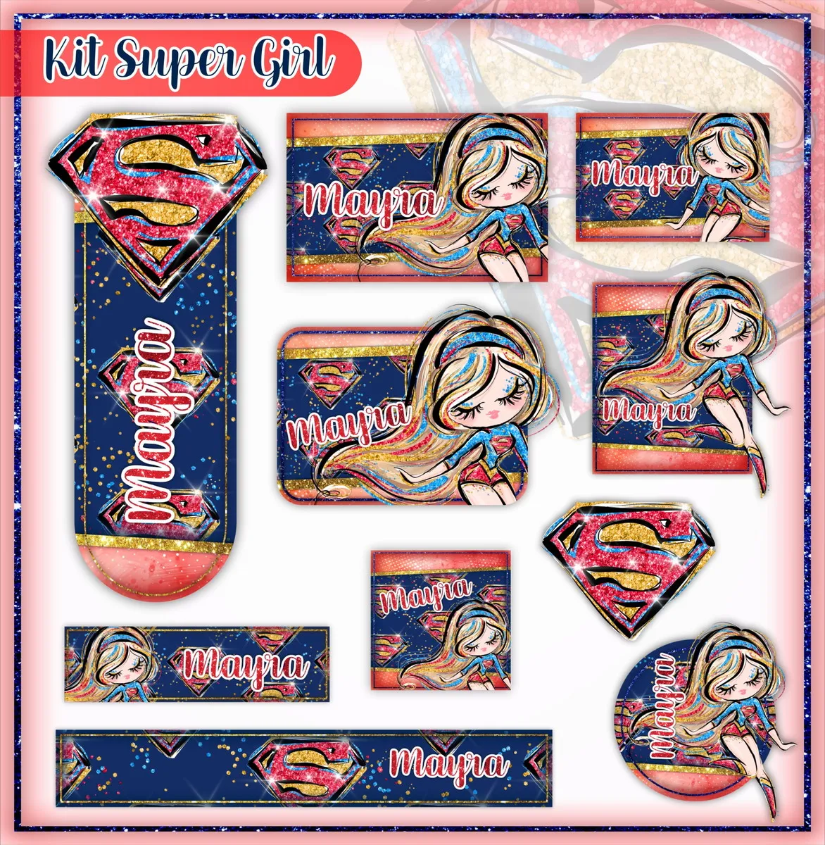 Arquivo Etiqueta Escolar Super Girl. Ideal para o início do ano letivo, aniversários, eventos escolares ou para facilitar a identificação de materiais de uso coletivo,