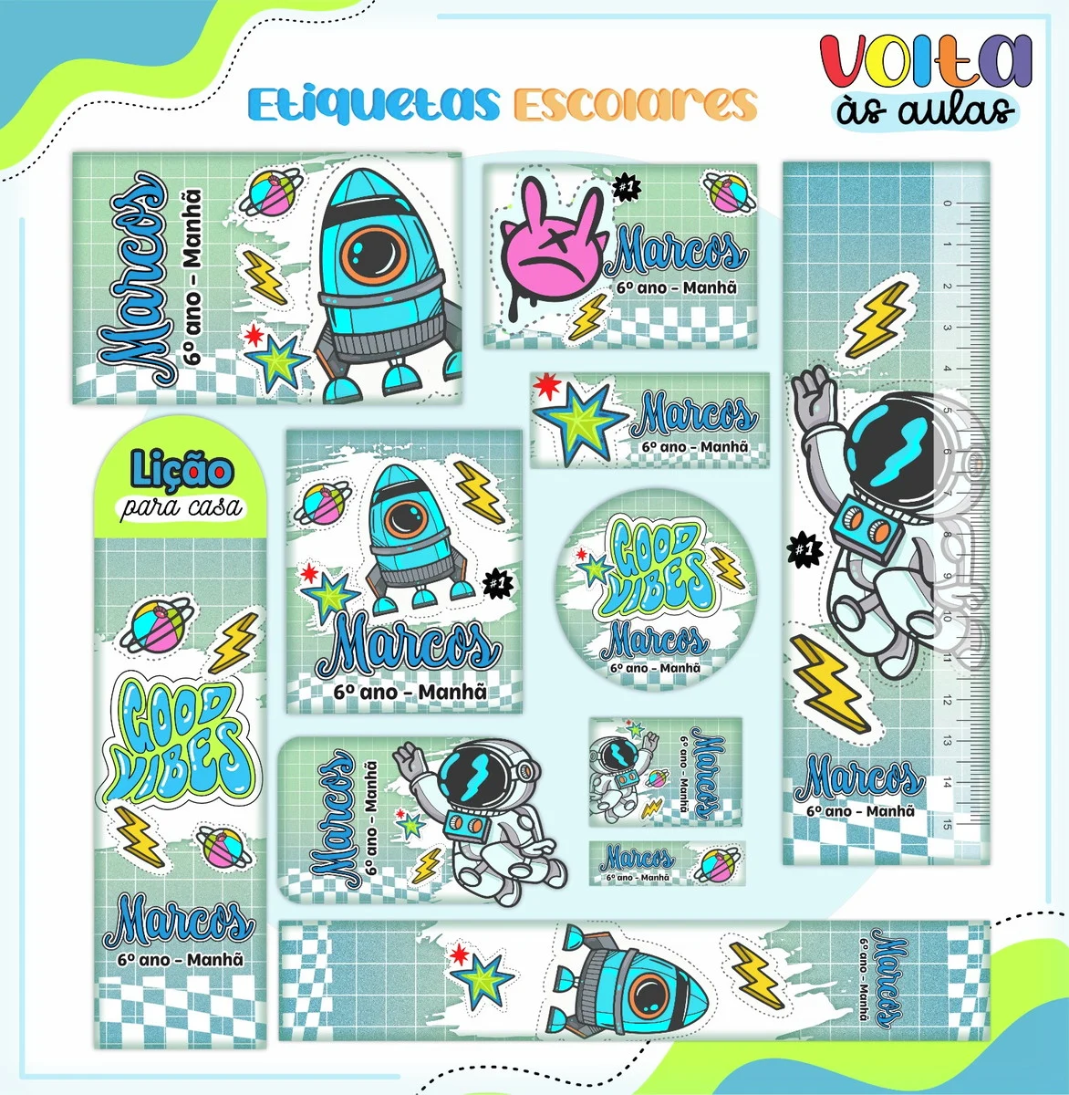 - Personalização: Deixe as etiquetas com a cara do seu filho ou da sua escola
