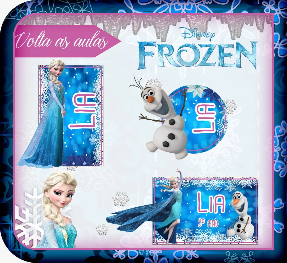 Arquivo Etiqueta Escolar Tema Frozen. Ideal para o início do ano letivo, aniversários, eventos escolares ou para facilitar a identificação de materiais de uso coletivo,