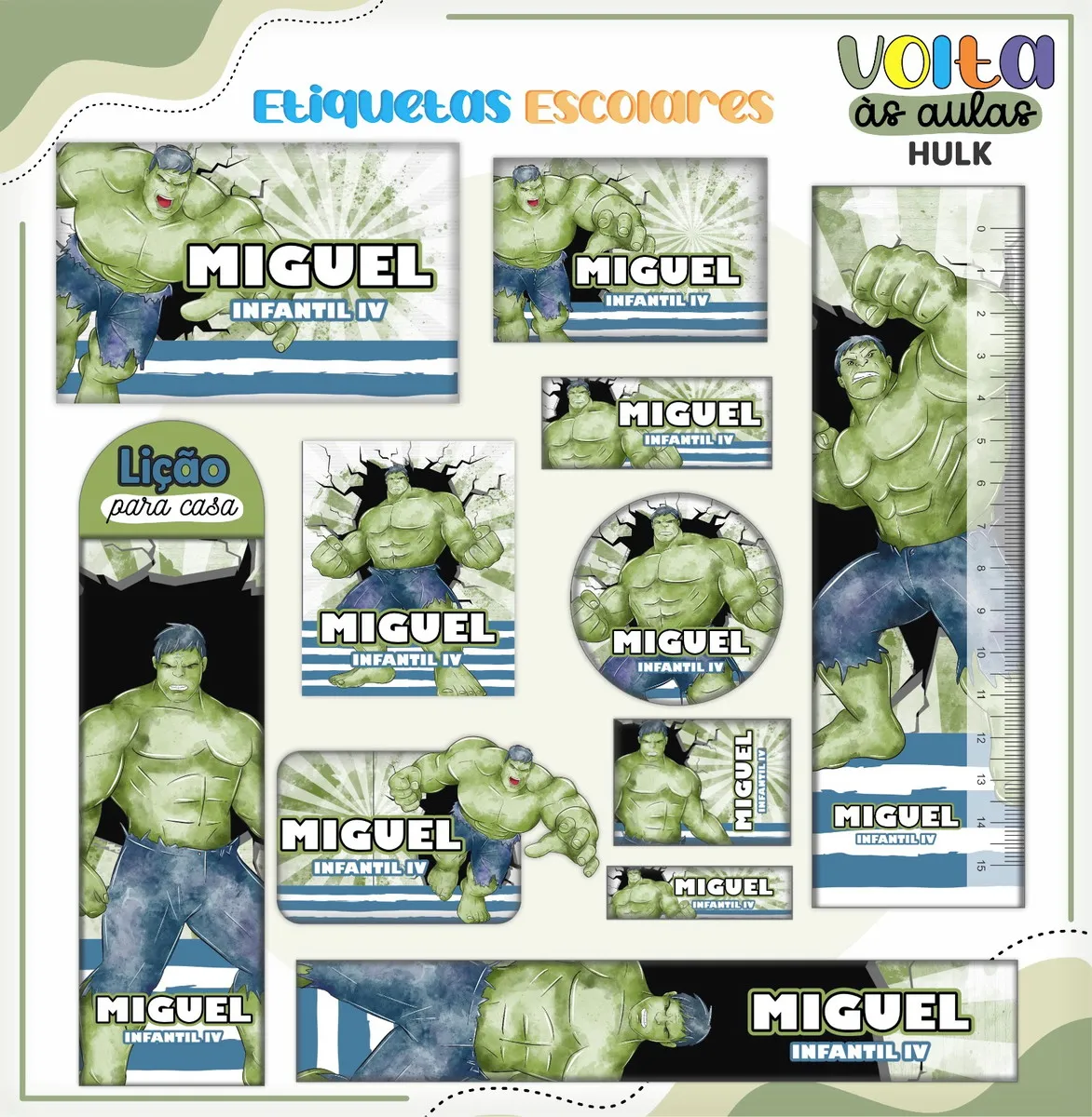 Transforme a organização escolar com nosso Arquivo Etiqueta Escolar Tema Hulk, desenvolvido especialmente para facilitar a personalização e impressão em casa! Ideal para pais, alunos e educadores, esse arquivo oferece praticidade e estilo na hora de identificar itens escolares, como mochilas, cadernos, lápis, e muito mais.