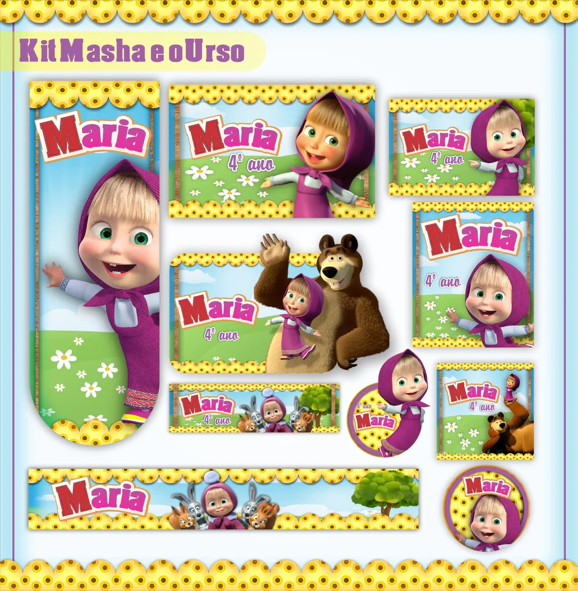 Arquivo Etiqueta Escolar Tema Masha. Ideal para o início do ano letivo, aniversários, eventos escolares ou para facilitar a identificação de materiais de uso coletivo,