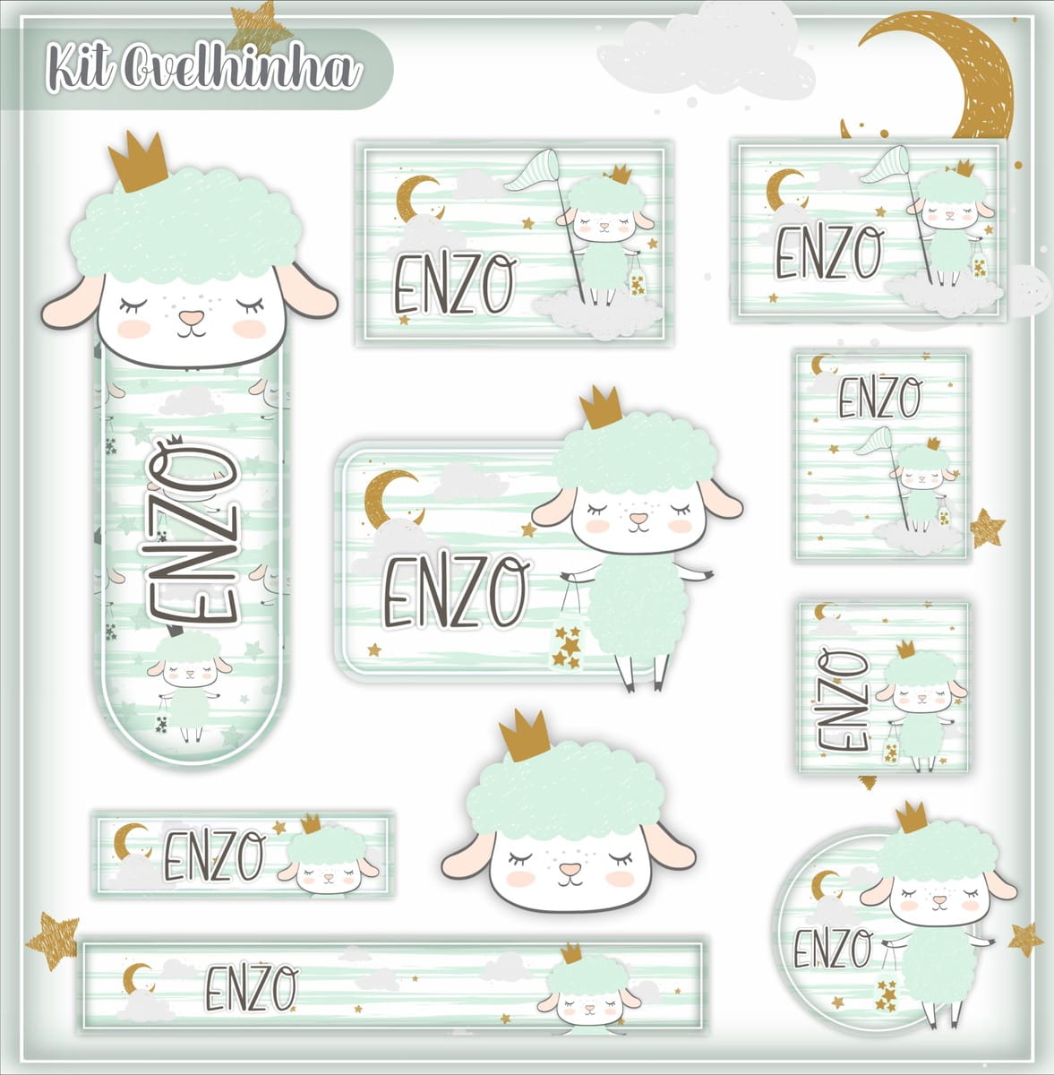 Arquivo Etiqueta Escolar Tema Ovelhinha. Ideal para o início do ano letivo, aniversários, eventos escolares ou para facilitar a identificação de materiais de uso coletivo,