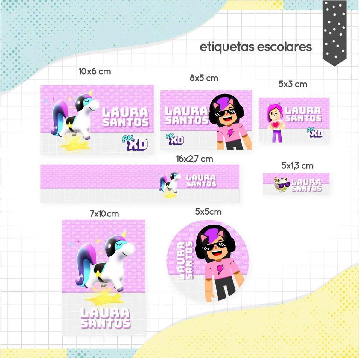 Arquivo Etiqueta Escolar Tema PK XD. Ideal para o início do ano letivo, aniversários, eventos escolares ou para facilitar a identificação de materiais de uso coletivo,
