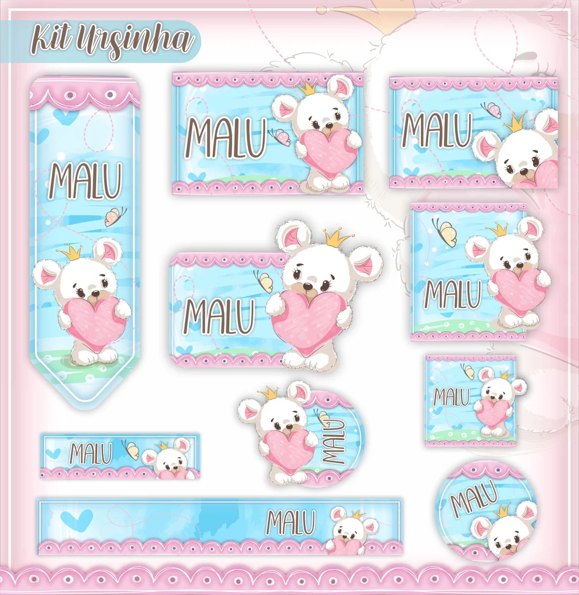 Arquivo Etiqueta Escolar Tema Ursinha. Ideal para o início do ano letivo, aniversários, eventos escolares ou para facilitar a identificação de materiais de uso coletivo,