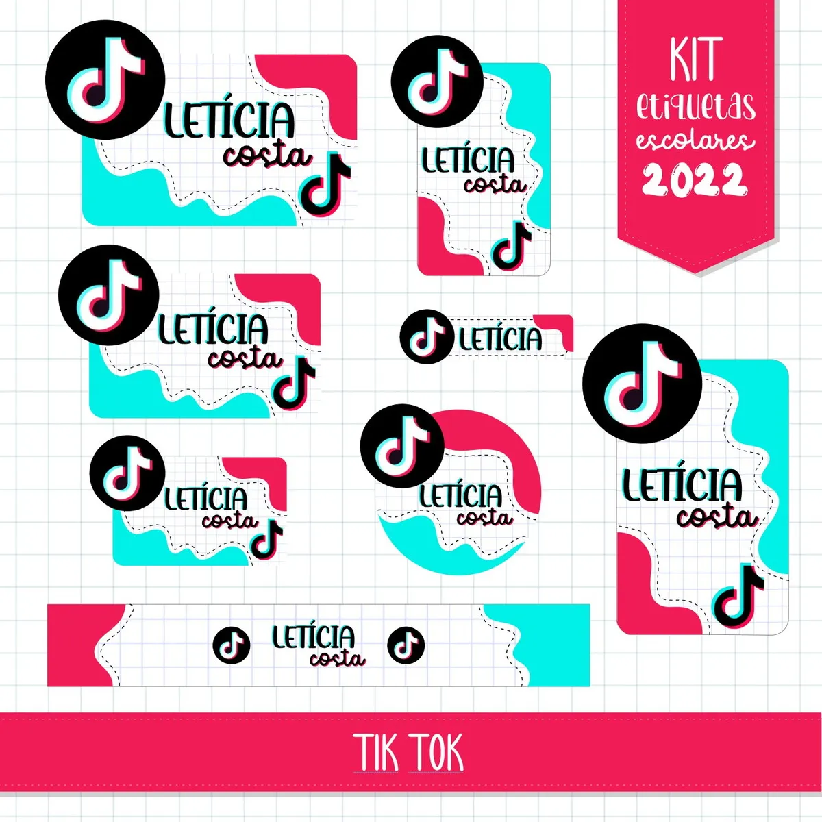Arquivo Etiqueta Escolar Tik Tok Studio. Ideal para o início do ano letivo, aniversários, eventos escolares ou para facilitar a identificação de materiais de uso coletivo,