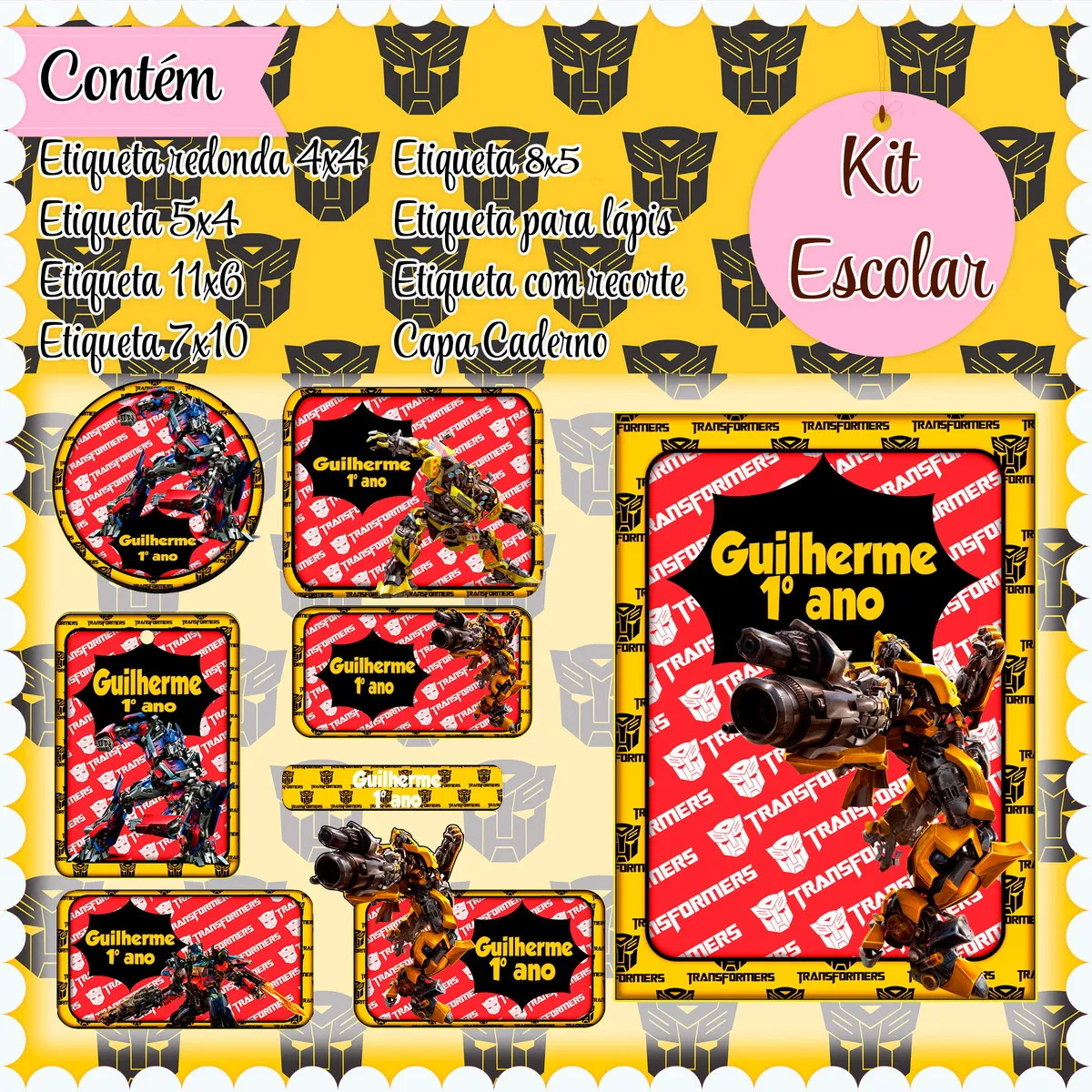 Arquivo Etiqueta Escolar Transformers. Ideal para o início do ano letivo, aniversários, eventos escolares ou para facilitar a identificação de materiais de uso coletivo,