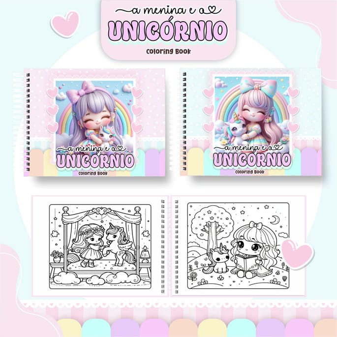 ✅ Vantagens do Livro de Colorir Digital Arquivo Livro de Colorir Menina e Unicórnio