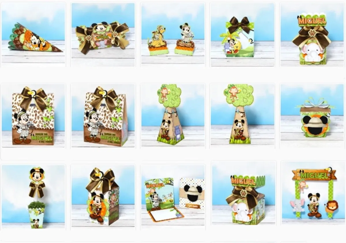 Dê asas à sua criatividade e divirta-se criando lindos projetos com esses Combo Arquivo de Corte Mickey Safari, O nosso arquivo contém uma variedade de modelos de corte, incluindo elementos populares, Com esses elementos, você poderá criar lindas novidades e decorações para enriquecer o visual das suas festas e torná-los ainda mais interessantes e envolventes.