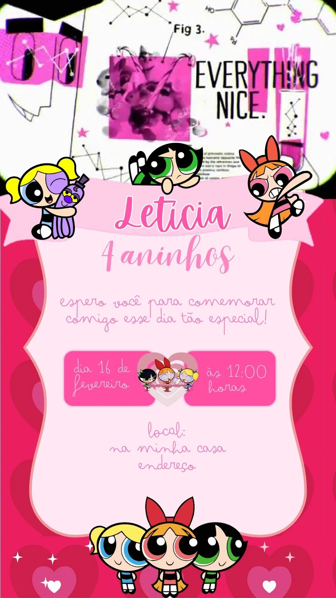 Mais do que apenas um convite digital, este modelo oferece uma experiência completa, envolvendo cada convidado na atmosfera divertida e corajosa das Meninas Super Poderosas. Ele cria expectativa, alegria e conexão com o tema da festa, tornando a celebração ainda mais inesquecível.