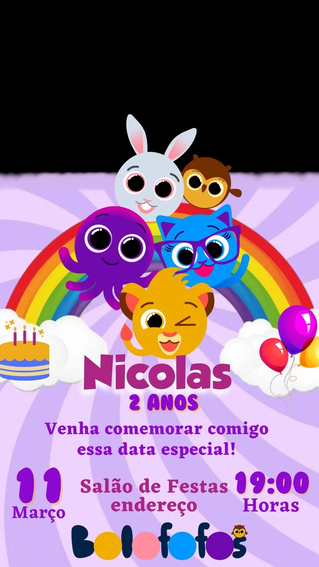 O Convite Aniversário Animado Bolofofos é a escolha perfeita para tornar o momento de convidar ainda mais divertido e especial. Inspirado nos simpáticos personagens Bolofofos, este convite digital combina cores vibrantes, música animada e efeitos visuais que encantam crianças e adultos. Ideal para festas infantis, ele cria expectativa e prepara os convidados para uma celebração alegre, colorida e inesquecível.