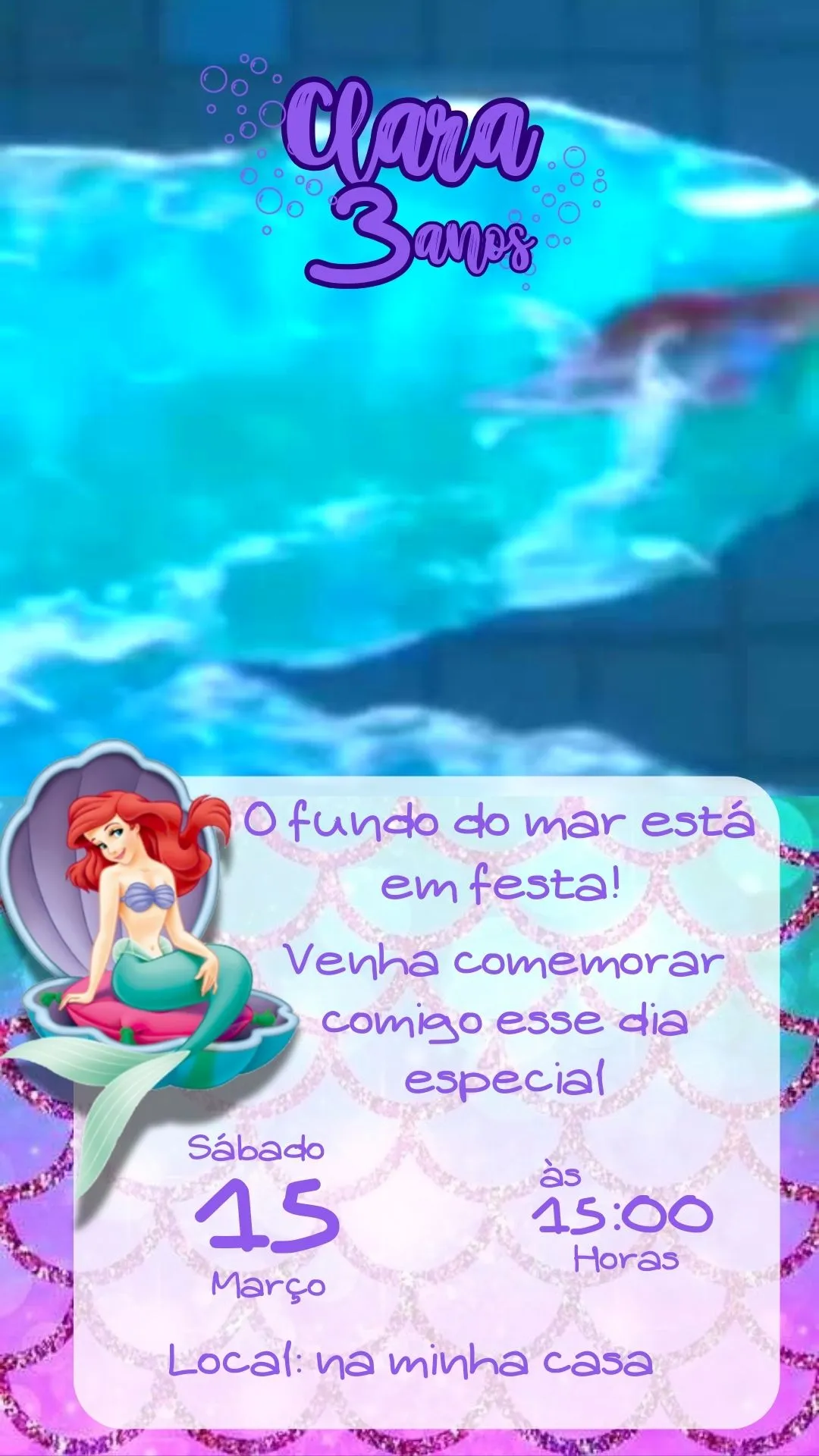 Convite Virtual Animado Sereia Ariel mp4 – Encanto Submarino para sua Festa