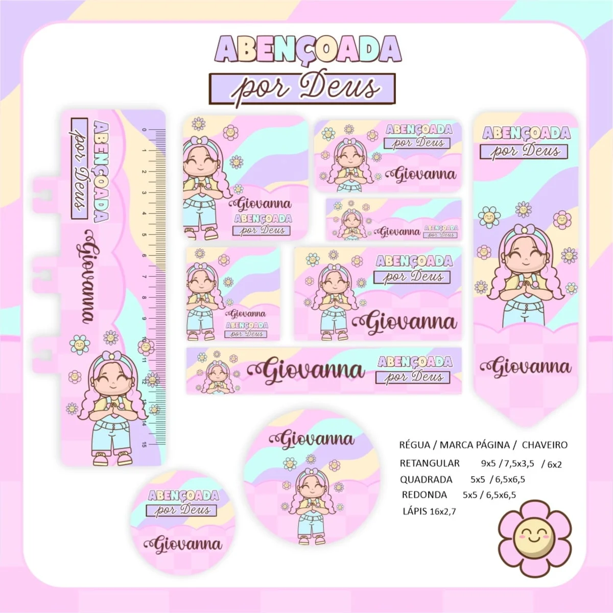 Etiqueta Escolar Abençoada Por Deus. Ideal para o início do ano letivo, aniversários, eventos escolares ou para facilitar a identificação de materiais de uso coletivo,