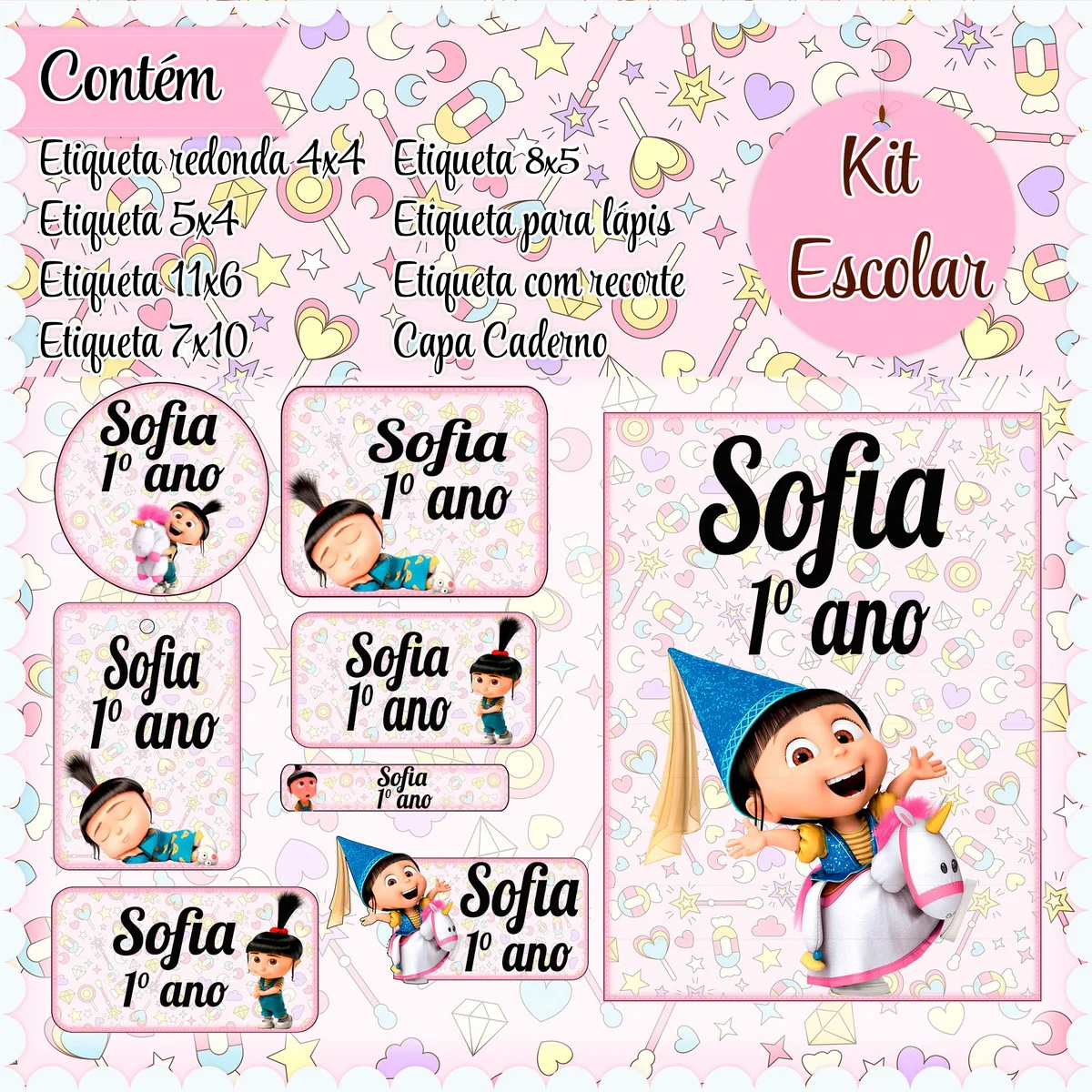 Etiqueta Escolar Agnes Studio, Png e Pdf. Ideal para o início do ano letivo, aniversários, eventos escolares ou para facilitar a identificação de materiais de uso coletivo,