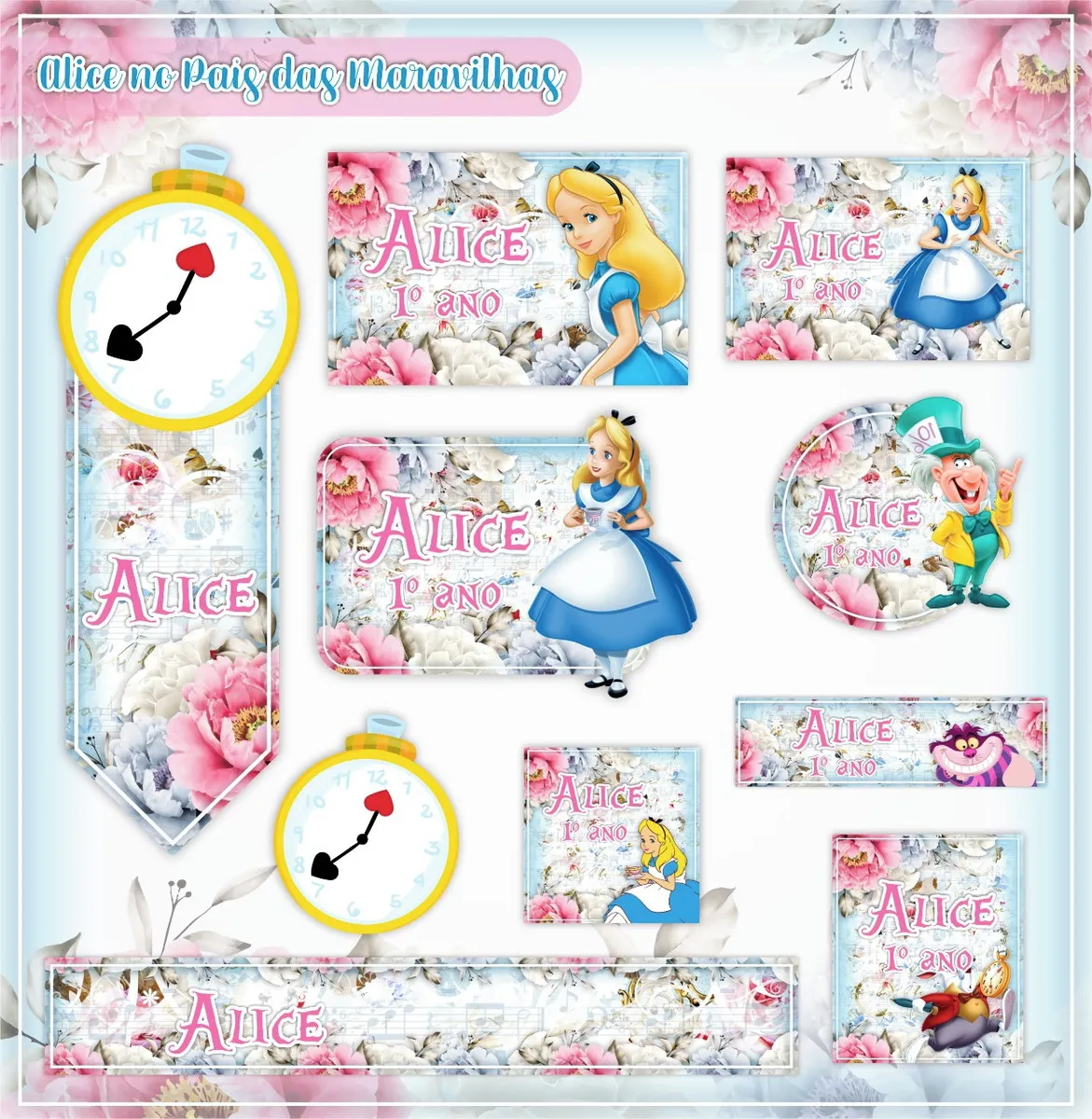 Etiqueta Escolar Alice Studio, Png e Pdf. Ideal para o início do ano letivo, aniversários, eventos escolares ou para facilitar a identificação de materiais de uso coletivo,