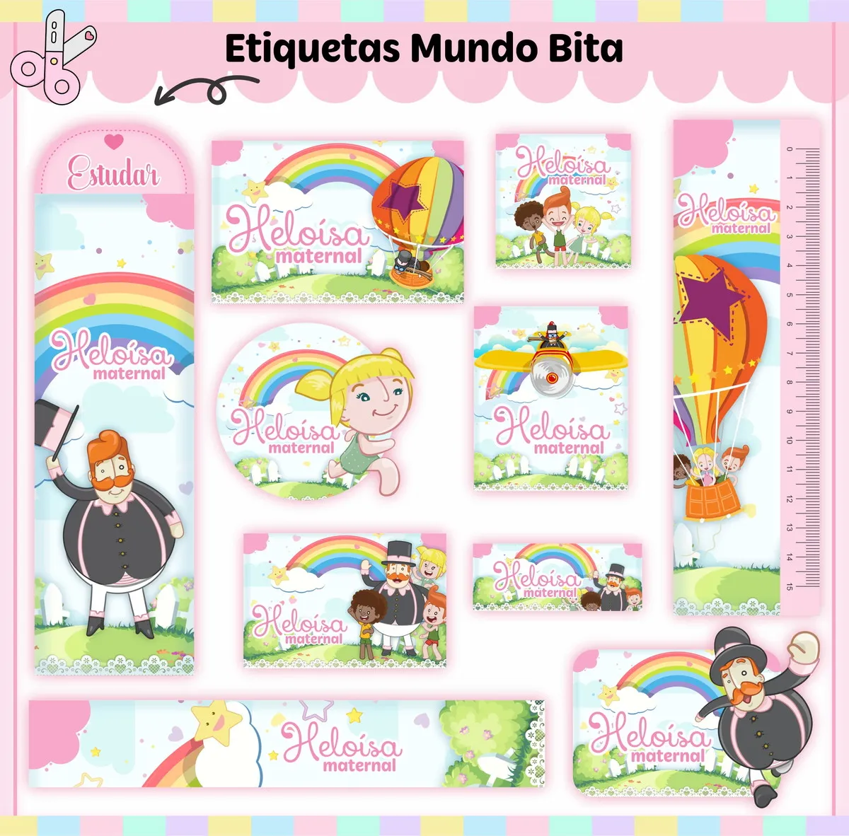 Etiqueta Escolar Bita Studio, Png e Pdf. Ideal para o início do ano letivo, aniversários, eventos escolares ou para facilitar a identificação de materiais de uso coletivo,