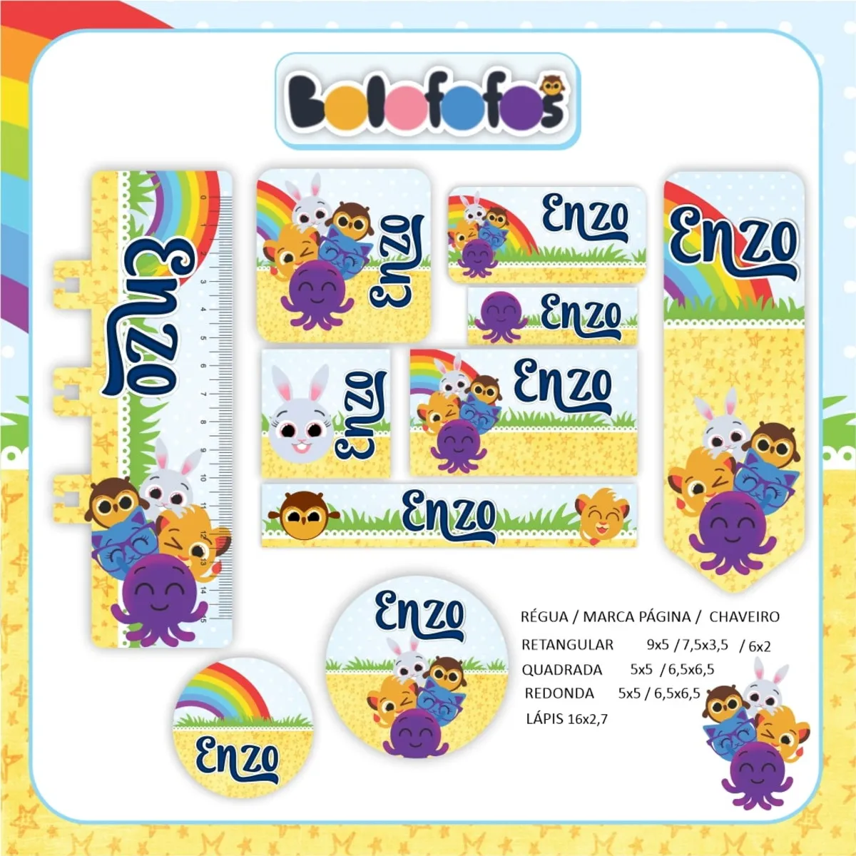 Etiqueta Escolar Bolofofos Studio, Png e Pdf. Ideal para o início do ano letivo, aniversários, eventos escolares ou para facilitar a identificação de materiais de uso coletivo,