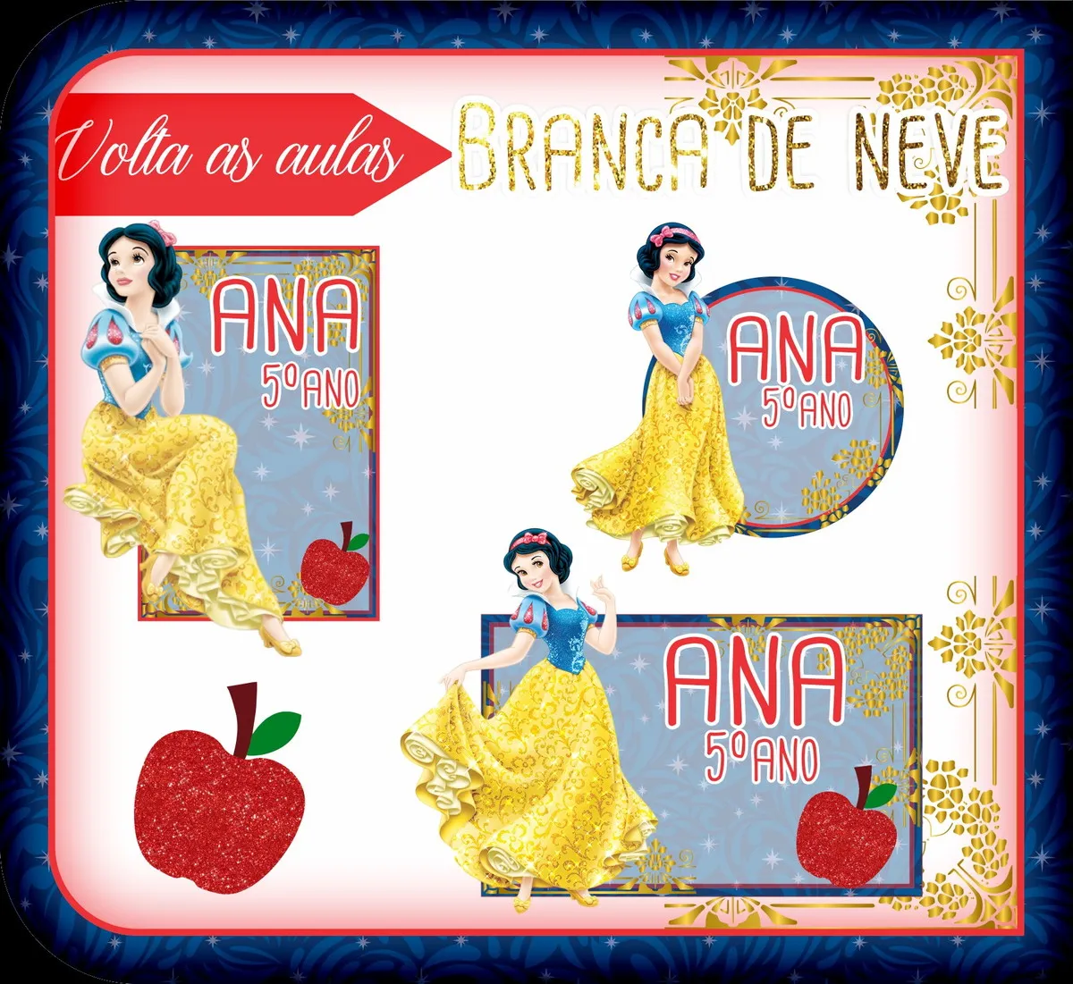 Etiqueta Escolar Branca de Neve Studio e Png. Ideal para o início do ano letivo, aniversários, eventos escolares ou para facilitar a identificação de materiais de uso coletivo,