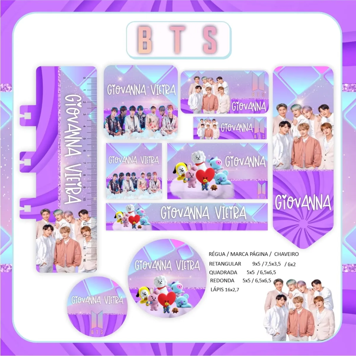 Etiqueta Escolar Bts Studio, Png e Pdf. Ideal para o início do ano letivo, aniversários, eventos escolares ou para facilitar a identificação de materiais de uso coletivo,