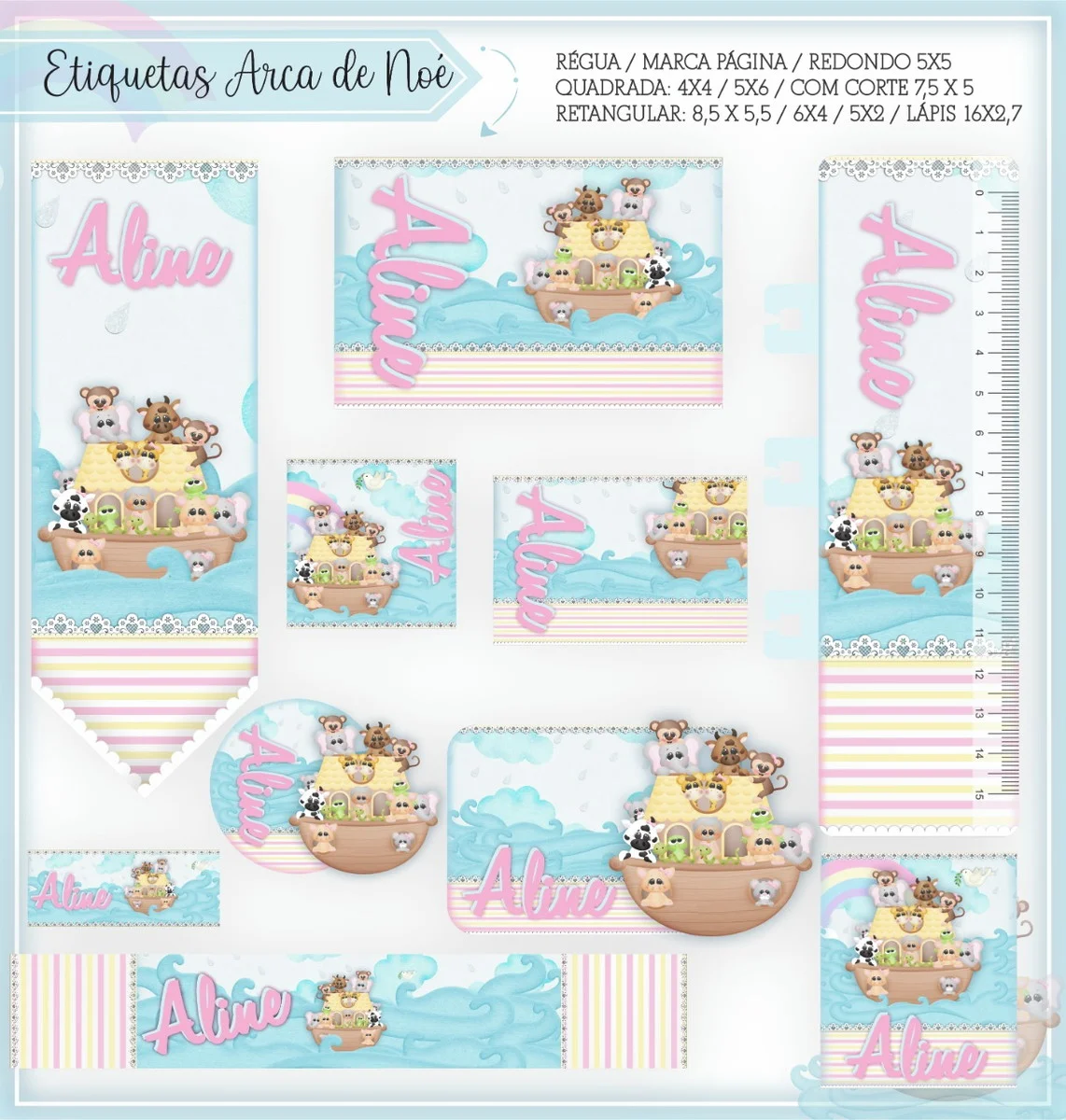 Etiqueta Escolar Digital Arca de Noé. Ideal para o início do ano letivo, aniversários, eventos escolares ou para facilitar a identificação de materiais de uso coletivo,