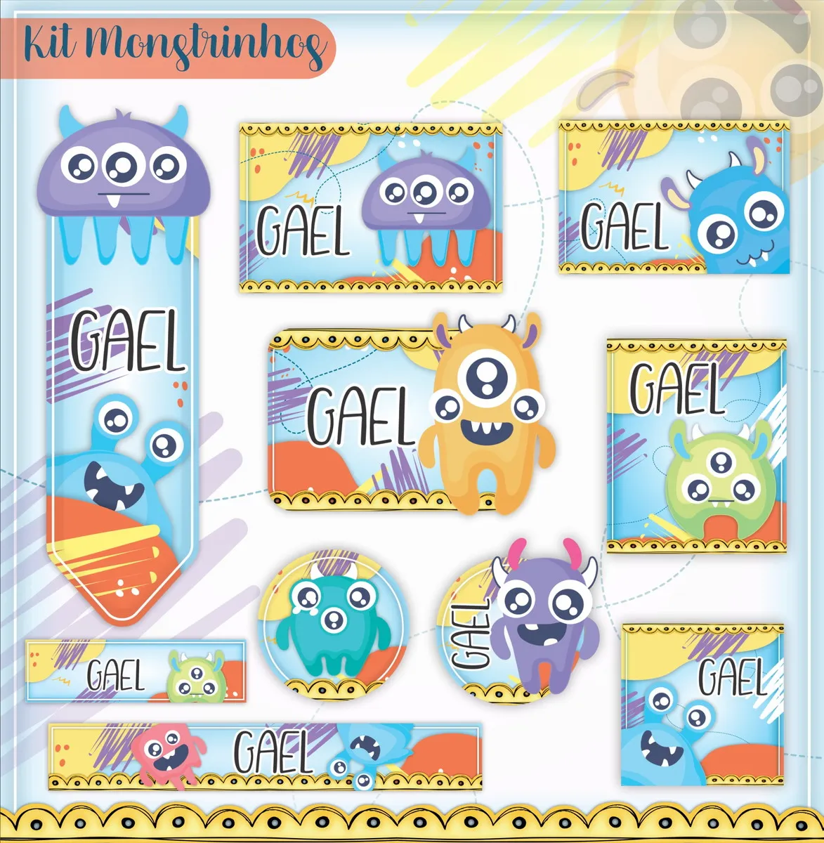 Etiqueta Escolar Digital Monstrinhos. Ideal para o início do ano letivo, aniversários, eventos escolares ou para facilitar a identificação de materiais de uso coletivo,