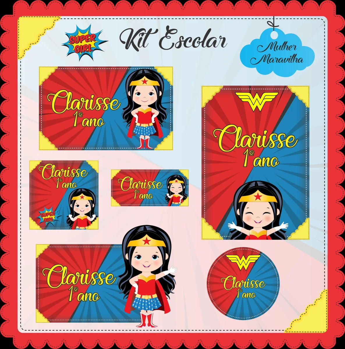 Transforme a organização escolar com nosso Etiqueta Escolar Digital Mulher Maravilha, desenvolvido especialmente para facilitar a personalização e impressão em casa! Ideal para pais, alunos e educadores, esse arquivo oferece praticidade e estilo na hora de identificar itens escolares, como mochilas, cadernos, lápis, e muito mais.