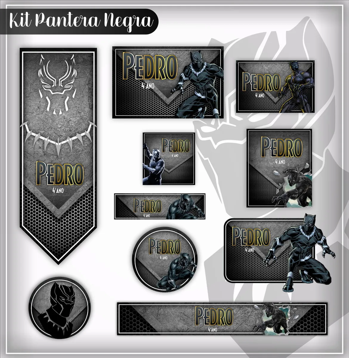 Etiqueta Escolar Digital Pantera Negra. Ideal para o início do ano letivo, aniversários, eventos escolares ou para facilitar a identificação de materiais de uso coletivo,