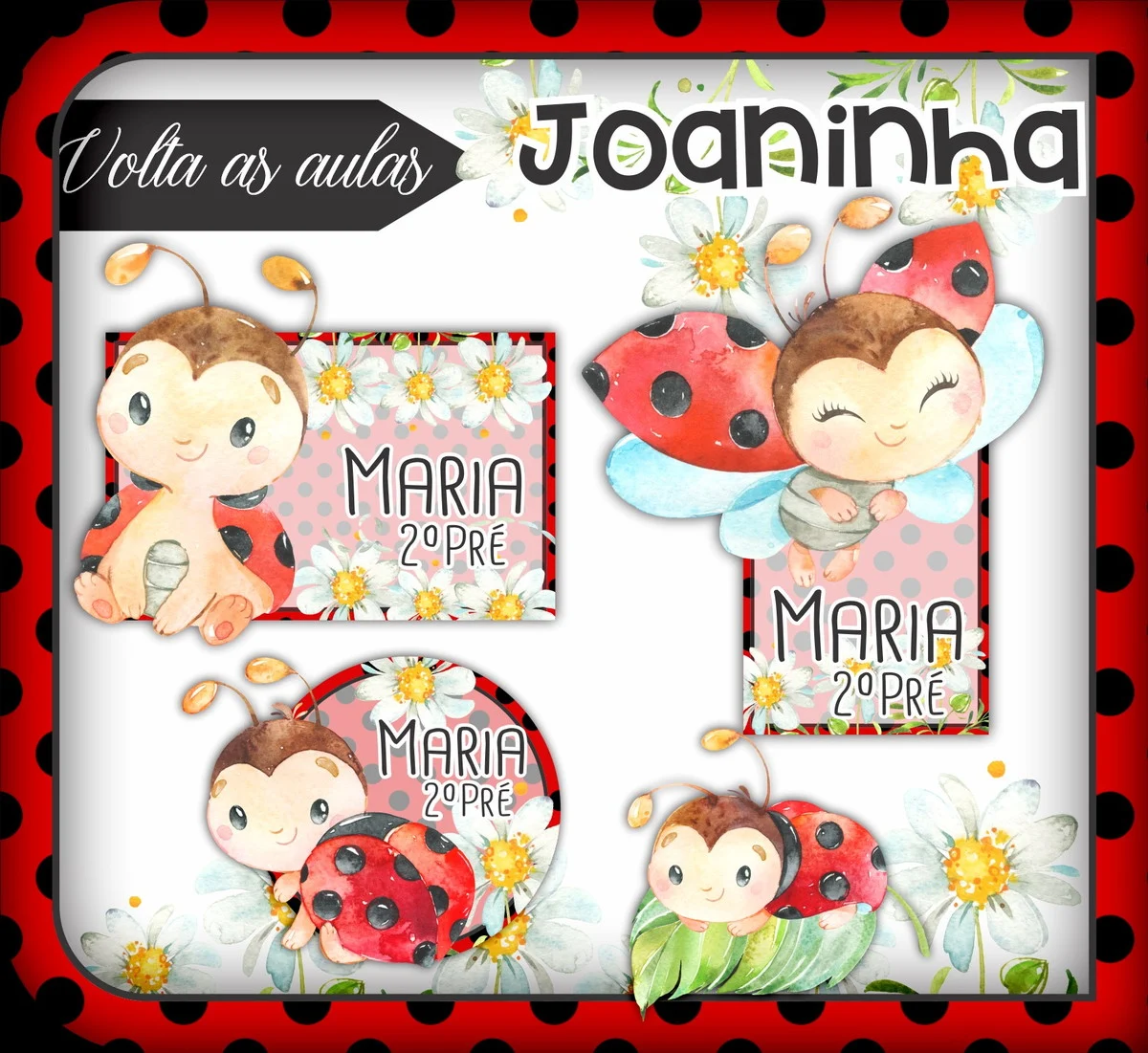 Etiqueta Escolar Joaninha Studio e Png. Ideal para o início do ano letivo, aniversários, eventos escolares ou para facilitar a identificação de materiais de uso coletivo,