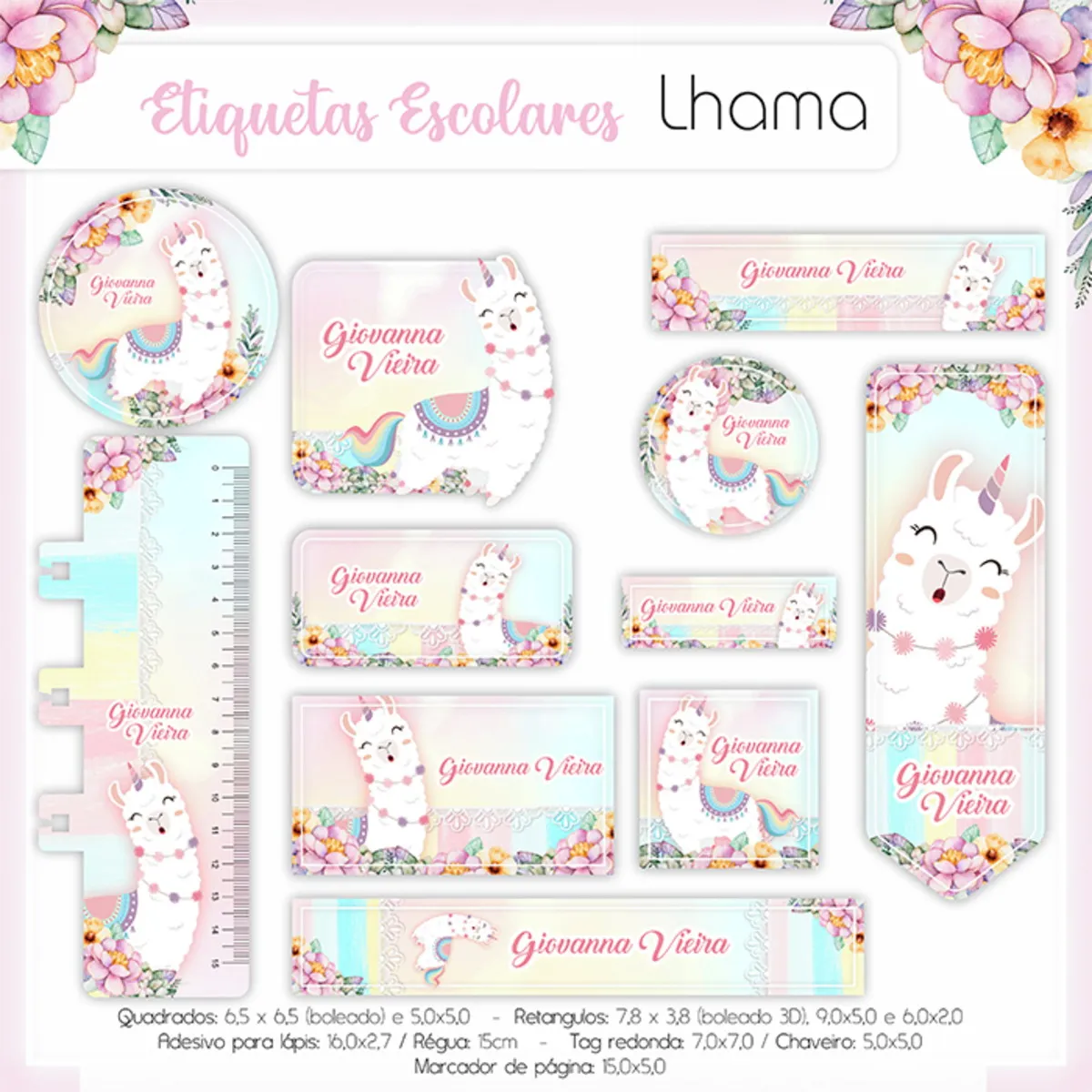 Etiqueta Escolar Lhama Studio e Pdf. Ideal para o início do ano letivo, aniversários, eventos escolares ou para facilitar a identificação de materiais de uso coletivo,