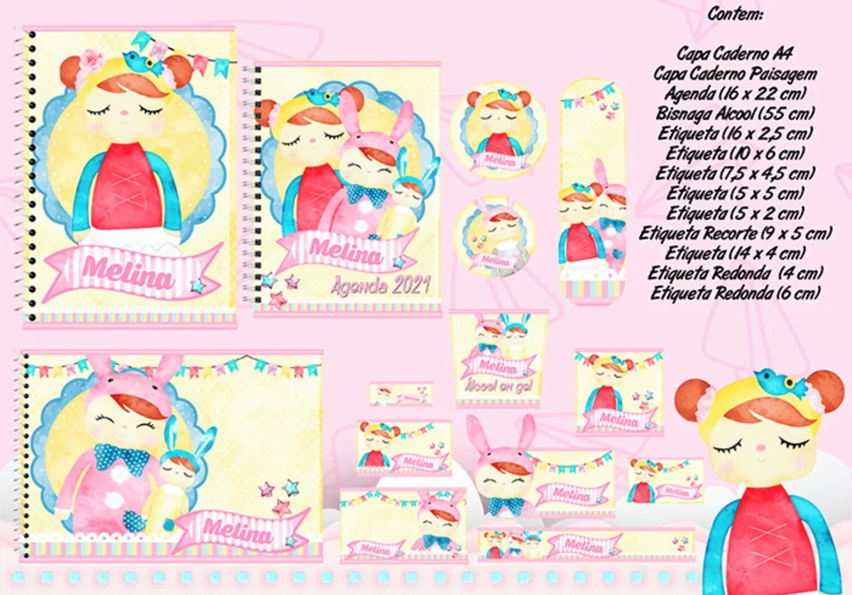 Etiqueta Escolar Metoo Doll Studio e Pdf. Ideal para o início do ano letivo, aniversários, eventos escolares ou para facilitar a identificação de materiais de uso coletivo,